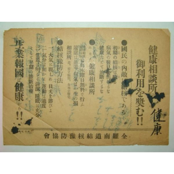 일제시기 전라남도결핵예방협회 전단지(일제시기)