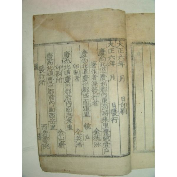 1917년 경주간행 목판본 서악서원지(西岳書院志)1책완질(1917년(대정6년))