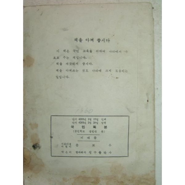 1960년 공민학교성인반용 국문독본 1책완질(1960년)