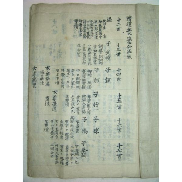 필사본 청도김씨세계(淸道金氏世系) 1책(조선)