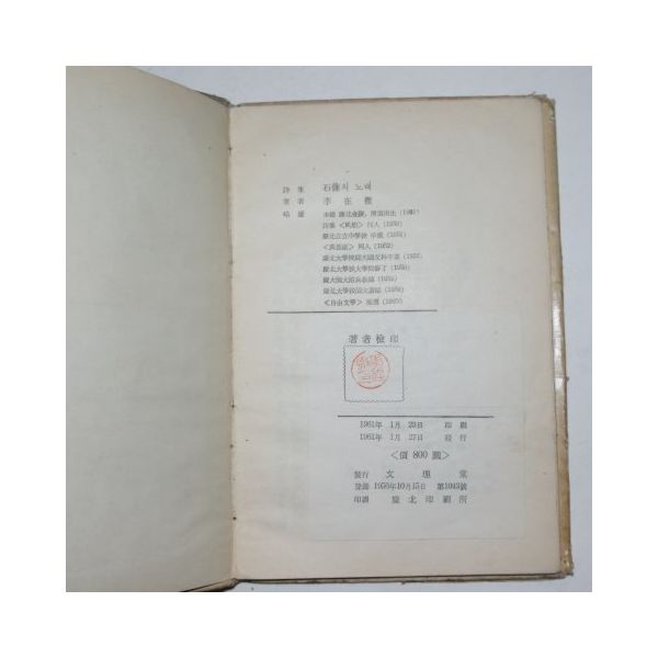 1961년초판 이재철(李在撤) 석상의 노래(저자싸인본)(1961년)