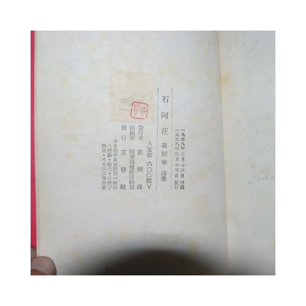 1958년초판 조병화(趙炳華)시집 석아화(石阿花)(1958년)
