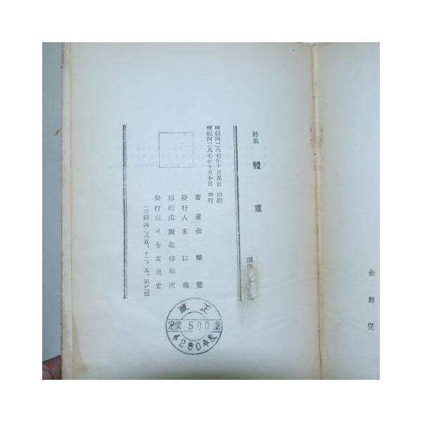 1954년초판 김요섭시집 체중(體重)(1954년)