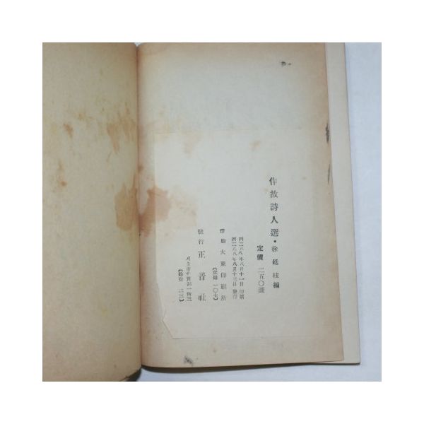 1955년 서정주(徐廷柱)編 작고시인선(作故詩人選)(1955년)