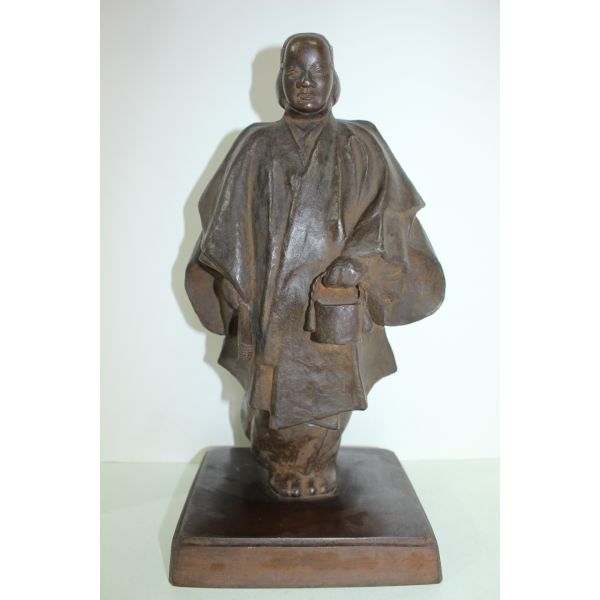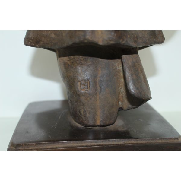 뒤로 작가의 수결이 있는 묵직한 청동브론즈 인물조각상 > 일본미술품