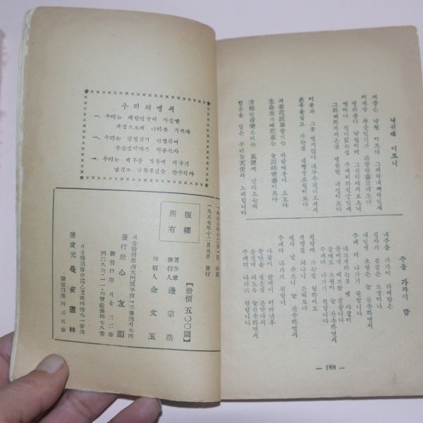 1957년초판 변종호(邊宗浩) 님의 詩歌