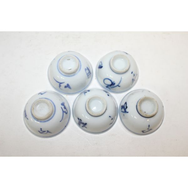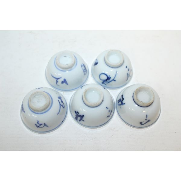 뒤로 연대가좋은 청화백자문자문 잔 5점 > 일본미술품
