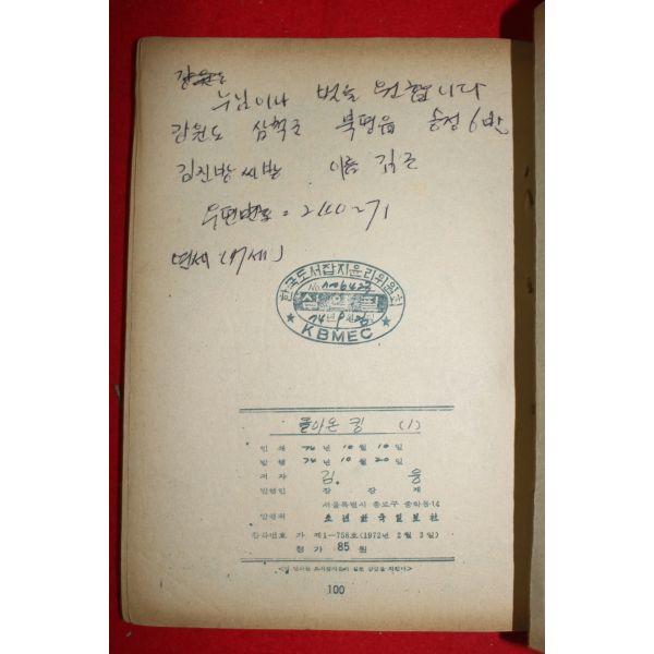 • 1974년 김웅 만화 돌아온 킹 3책완질