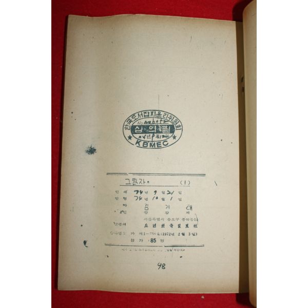 • 1974년 김기태 만화 그림자 3책완질