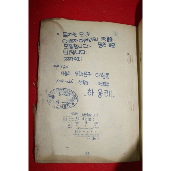 회사명 옛날물건 주소 경남 밀양시 중앙로 80-6 (가곡동) 사업자 등록번호 615-03-17906 대표 김동영 전화 010-3845-4358 팩스 통신판매업신고번호 제2003-14호 개인정보 보호책임자 김동영 Copyright © 2001-2013 옛날물건. All Rights Reserved.