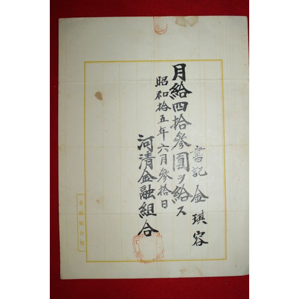 • 1940년(소화15년) 하청금융조합 급료지급표