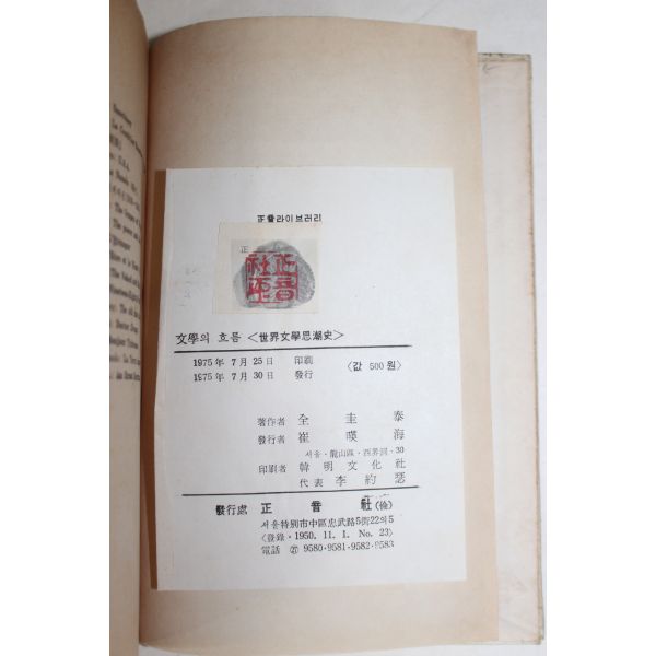 • 1975년초판 전규태(全圭泰) 문학의 흐름