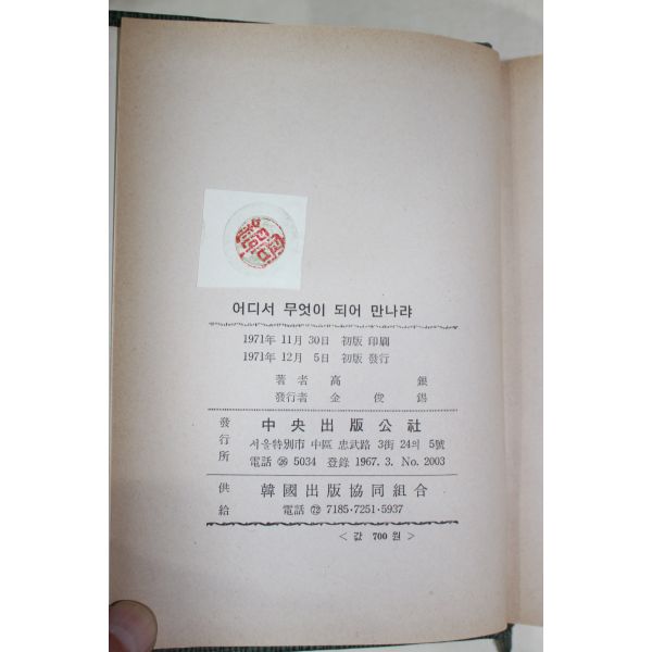 • 1971년초판 고은(高銀) 어디서 무엇이 되어 만나랴