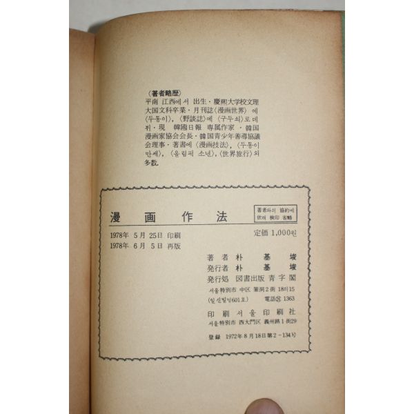 1978년 박기준(朴基埈) 만화작법(漫畵作法)