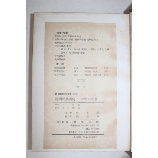 1974년초판 임동권(任東權) 한국민요연구(韓國民謠硏究)