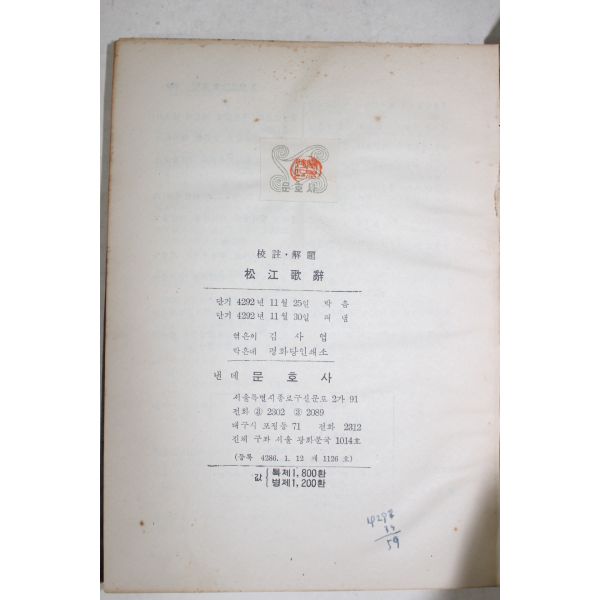 1959년 김사엽(金思燁) 송강가사(松江歌辭)