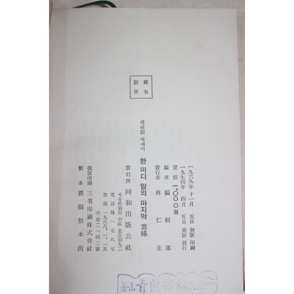 • 1974년중판 컬러판 에세이 한마디 말의 마지막의미