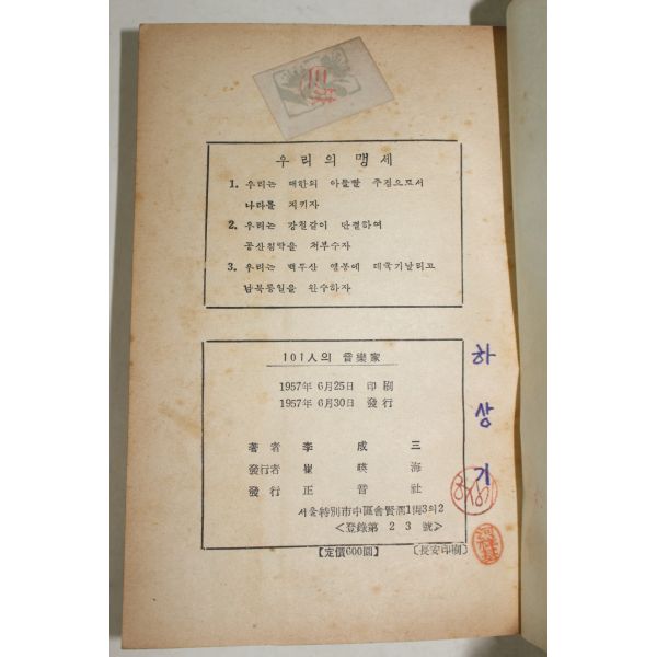 • 1957년초판 이성삼(李成三) 101인의 음악가