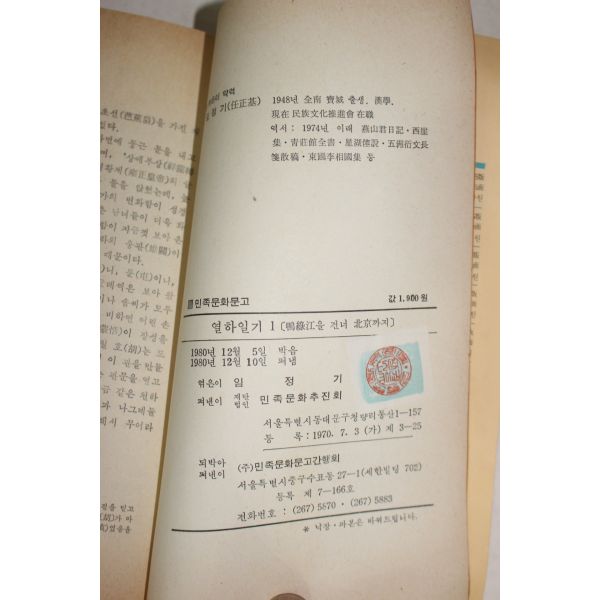 1980년초판 박지원(朴趾源) 임정기 편 열하일기(熱河日記)