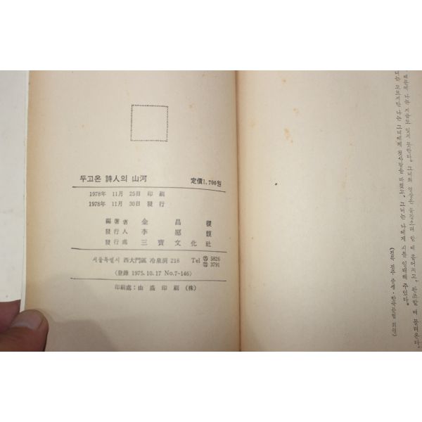 • 1978년초판 김창직(金昌稷) 두고온 시인의 산하(두고온 詩人의 山河 13道代表詩人百人隨想集)