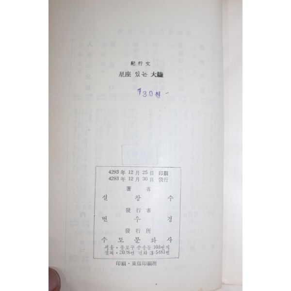 • 1960년초판 설창수 기행문 성좌있는 대륙(星座있는 大陸)