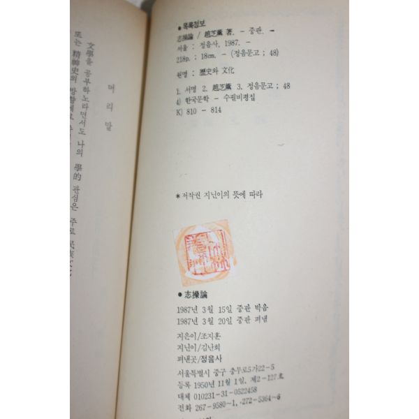 1987년중판 조지훈(趙芝薰) 지조론(志操論)