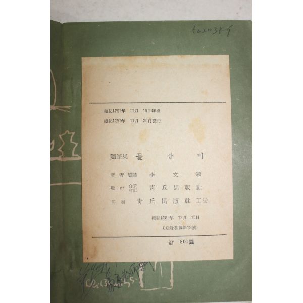 • 1958년 이문희(李文姬)수필집 들장미