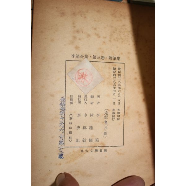 • 1956년초판 이상전집(李箱全集) 제3권 수필집