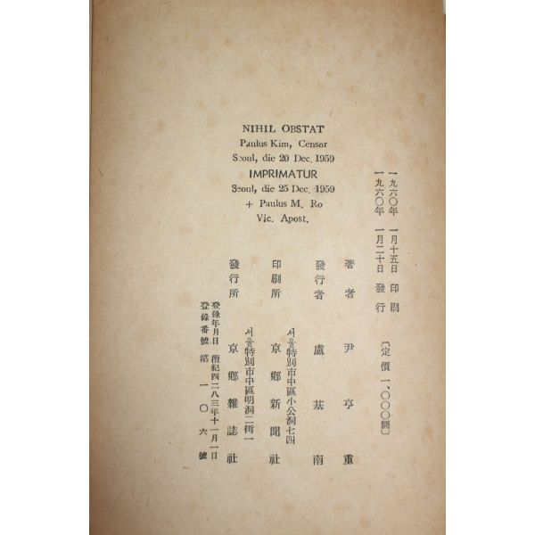 1960년초판 윤형중(尹亨重) 상해천주교요리(詳解川主敎要理)
