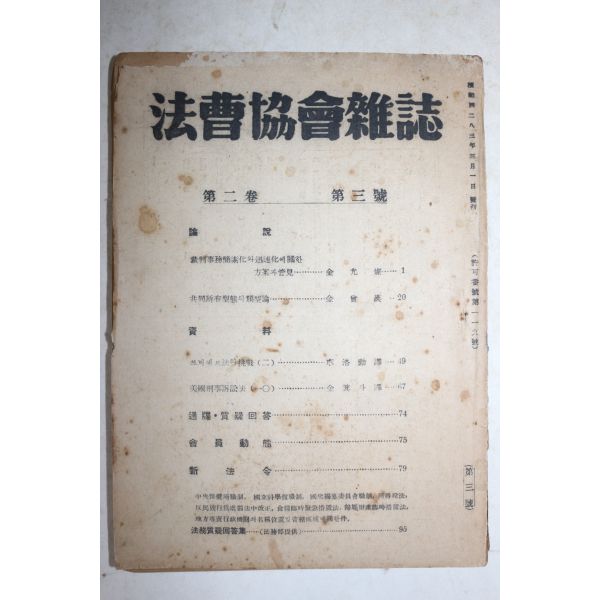• 1950년 법조협회잡지(法曺協會雜誌) 제2권 제3호