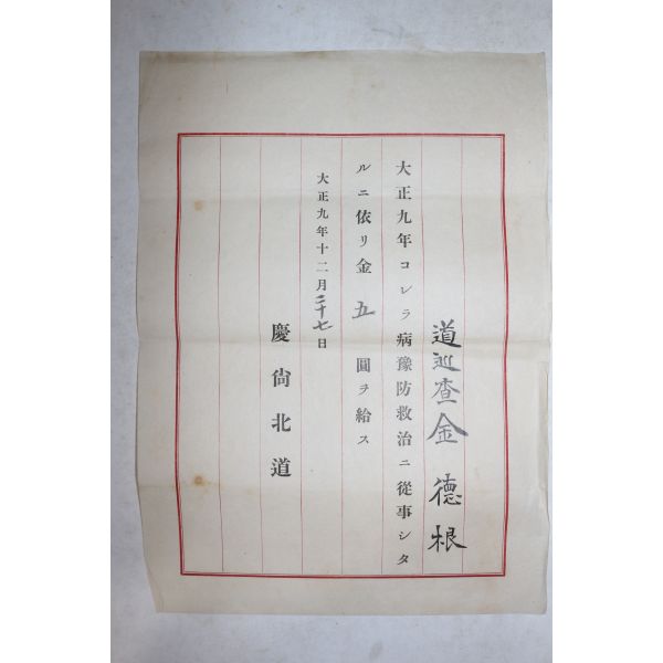 1920년(대정9년) 경상북도 도순사 김덕근 증서