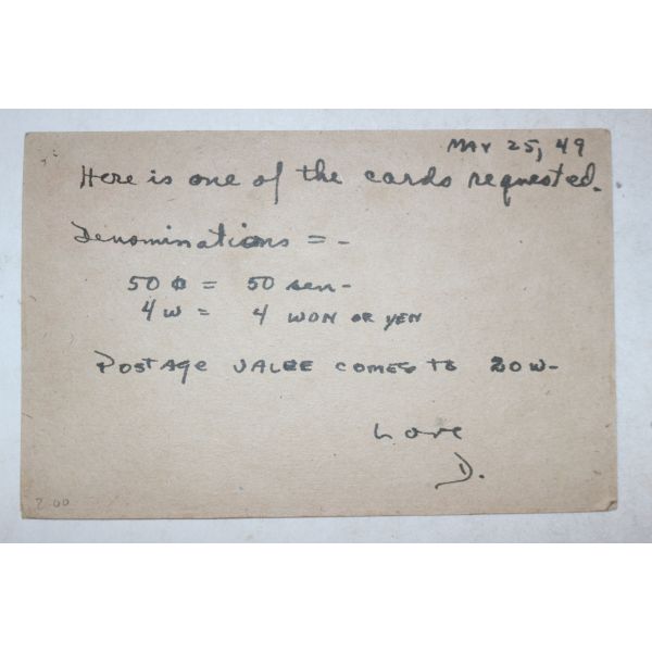 뒤로 1949년 해방조선,이준열사,첨성대 우편엽서 사용실체 > 기타