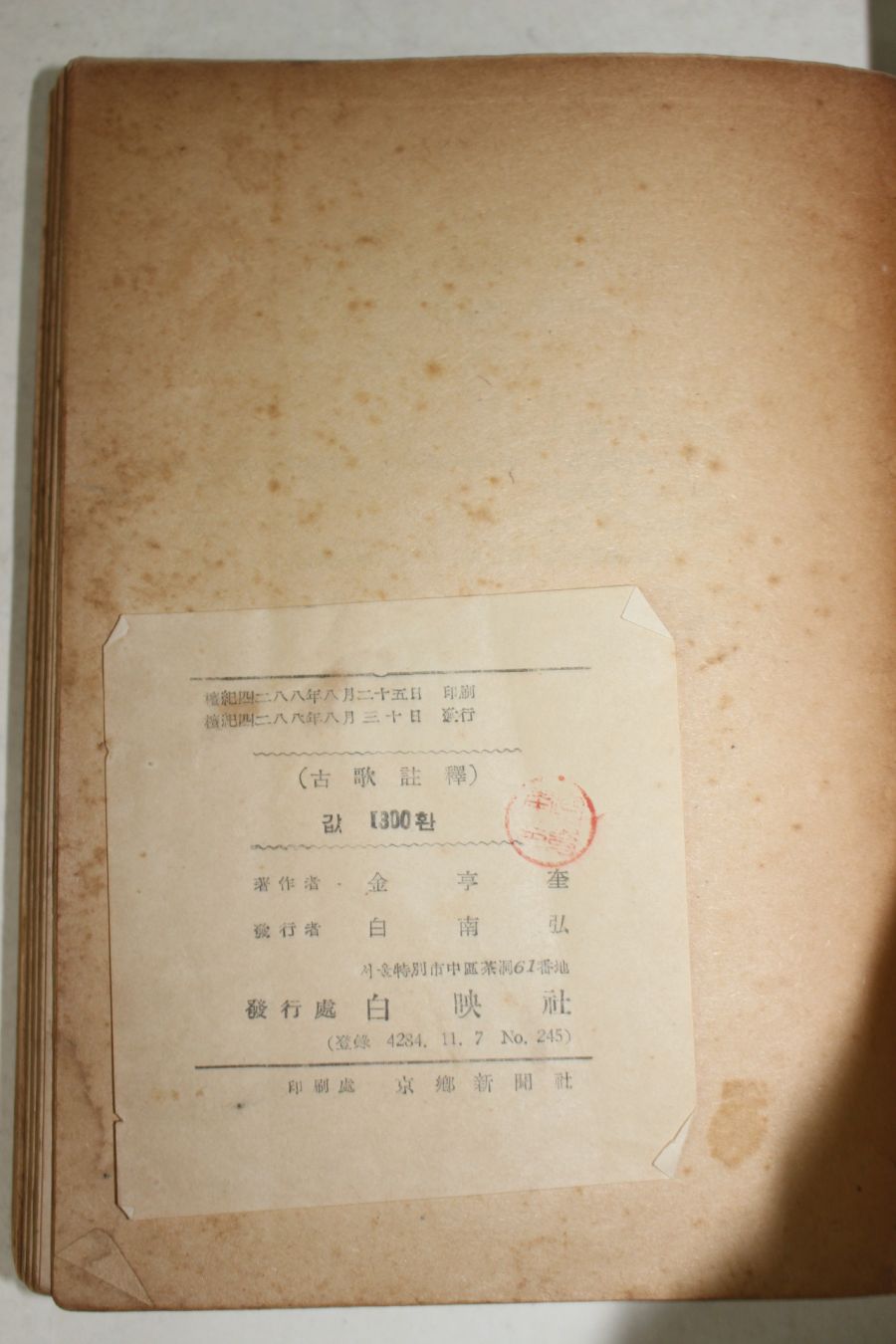 1955년 김형규(金亨奎) 고가주석(古歌註釋) 요약정보 및 구매