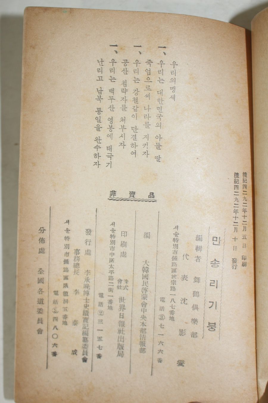 1959년초판 만송 리기붕 > 근대도서
