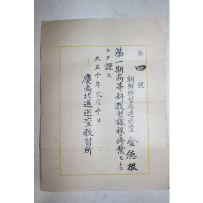 1921년(대정10년) 경상북도순사교습소 제1기 고등과교습과정수료증 요약정보 및 구매