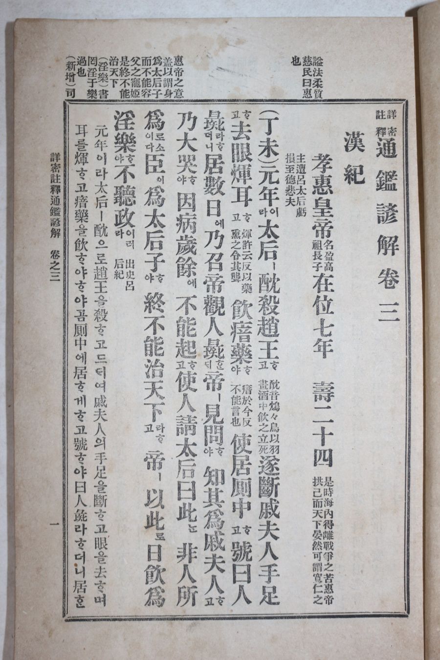 1915년(대정4년) 상밀주석 통감언해 권3 1책 > 희귀고서적
