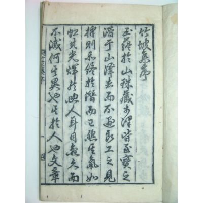 1911년(목활자본)으로 합천 원천정(源泉亭)에서 간행된 죽파집(竹坡集)1책완질 상태좋으며 파장없음 크기:30.7*20.5센치