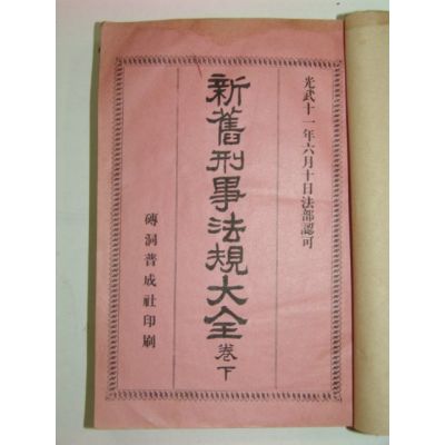 융희1년 신구형사법규대전 하권 요약정보 및 구매