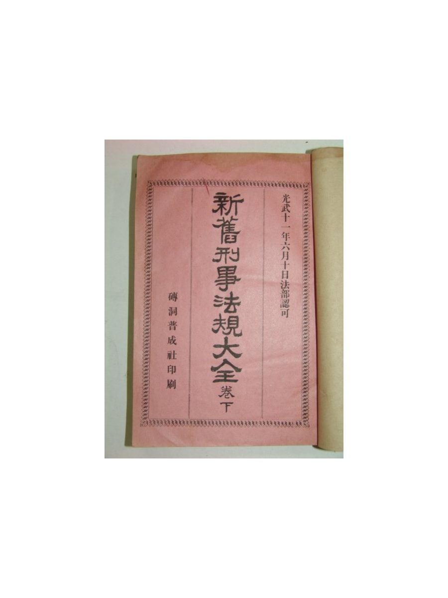 융희1년 신구형사법규대전 하권(1907년(융희원년))