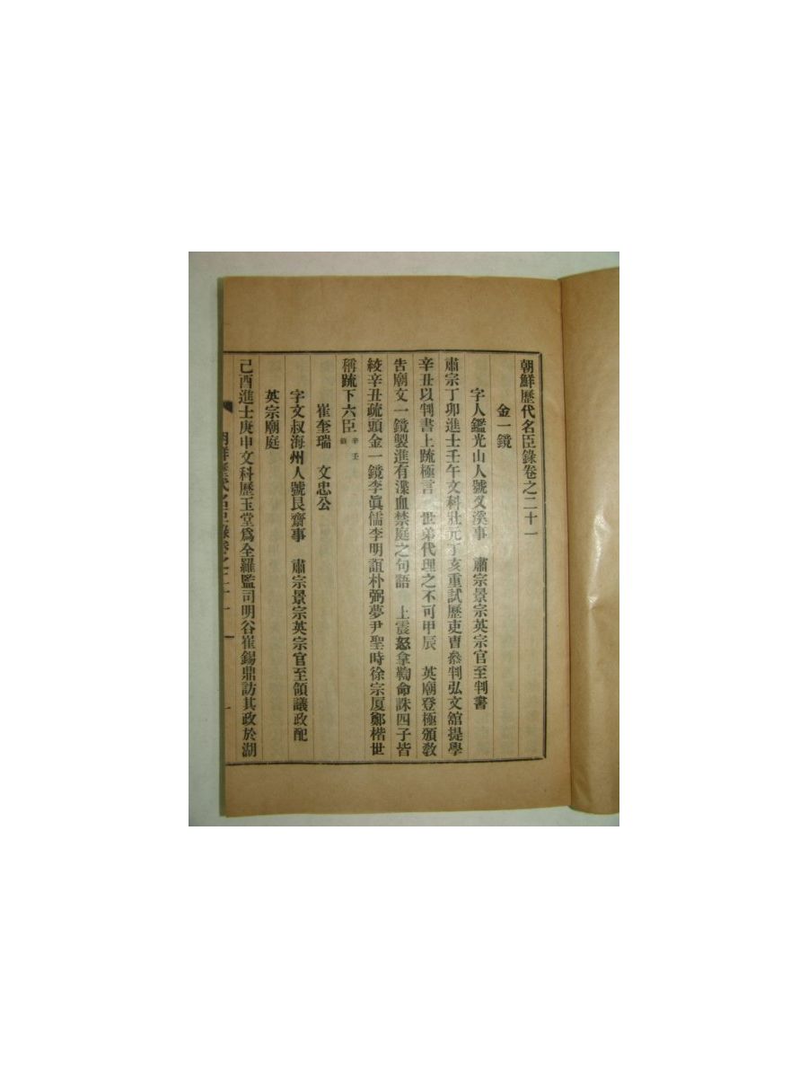 • 1932년 김천간행 조선역대명신록 권21~終 1책