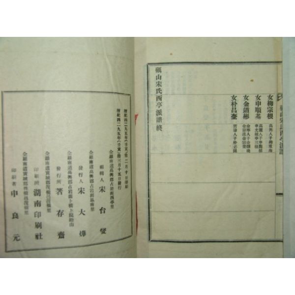 연활자본 여산송씨서정파보(礪山宋氏西亭派譜)1책완질(1962년)