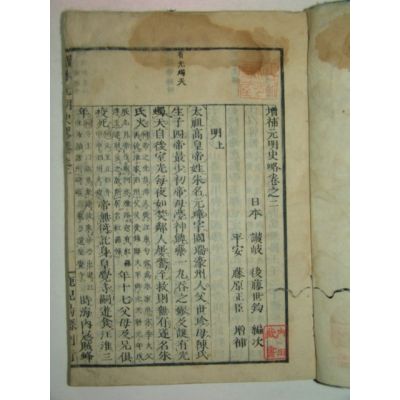 일본 목판본 증보원명사략(增補元明史略)권2,3 2책(일본목판본)