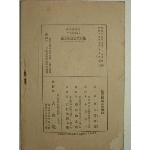 1942년 日本刊 전시형사특별법정해(戰時刑事特別法正解)(1942년)