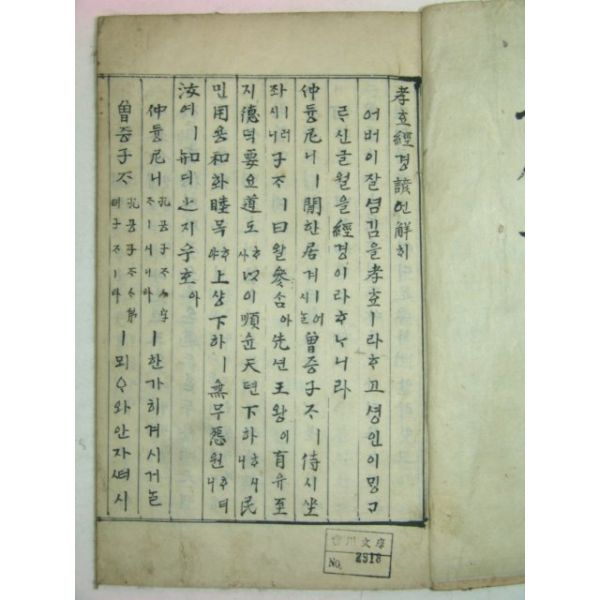 필사본 효경언해(孝經諺解) 1책완질 > 고서적