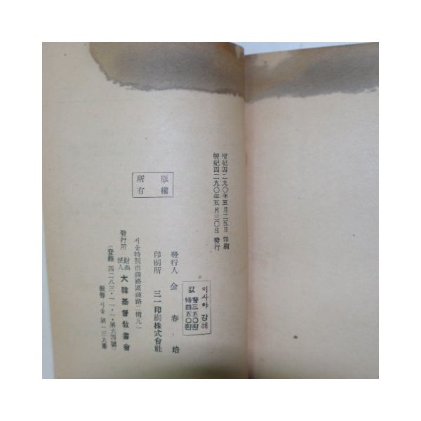 1957년 대한기독교 이사야서강해 1책완질(1957년)