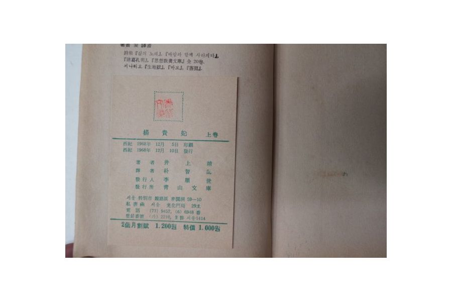 1968년 양귀비(楊貴妃) > 근대도서