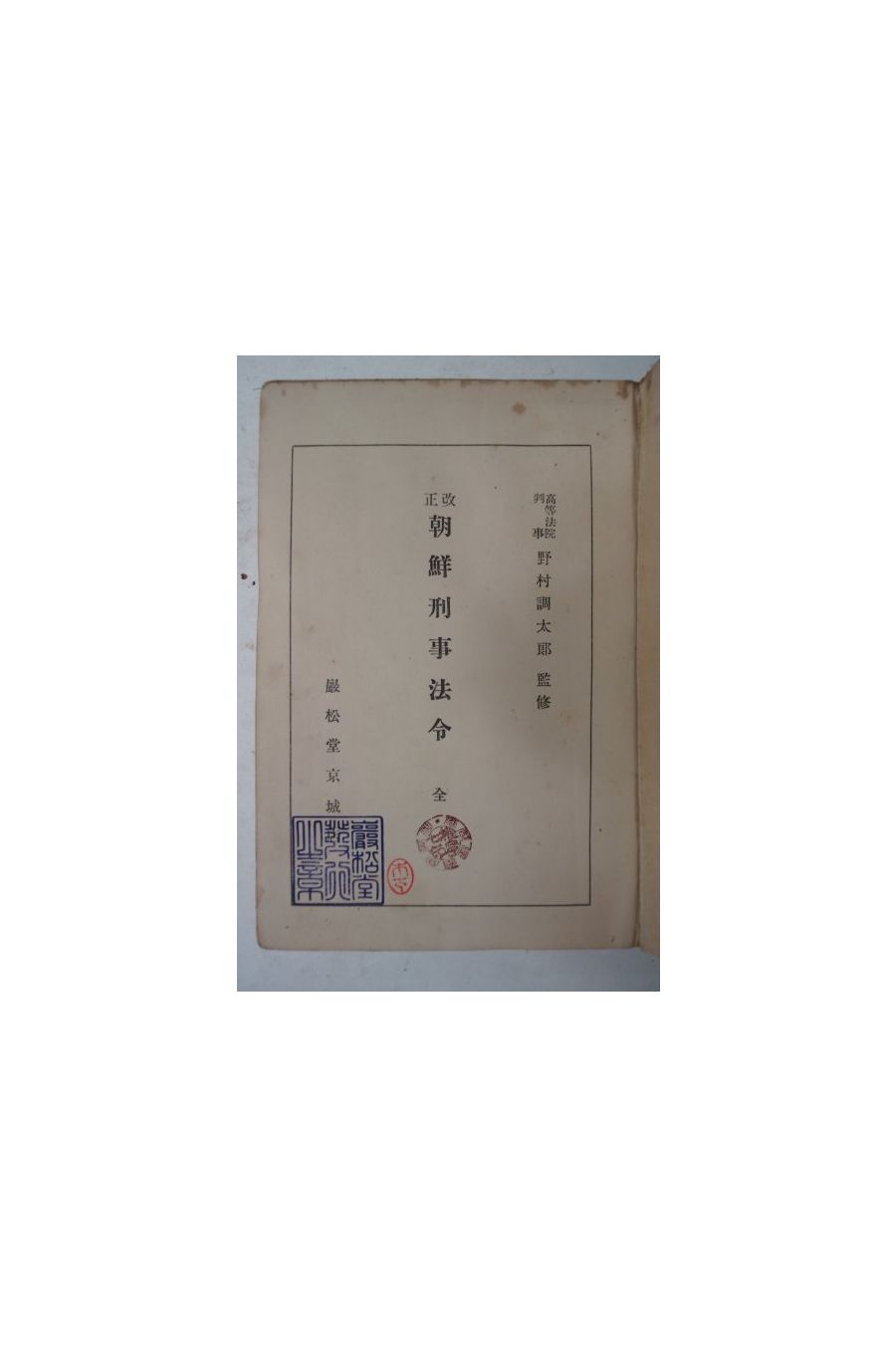 1929년 개정조선형사법력(改正朝鮮刑事法令) > 고서적