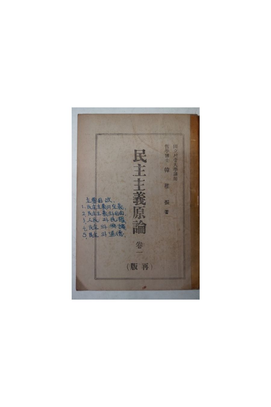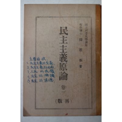 1948년 한치진(韓稚振) 민주주의원론(民主主義原論)권1(1948년)