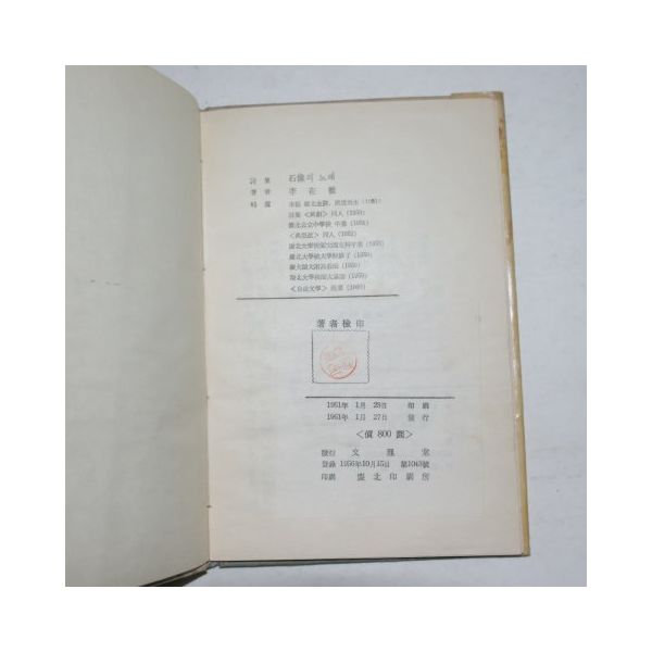1961년초판 이재철(李在撤) 석상의 노래(저자싸인본)(1961년)
