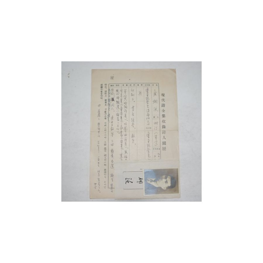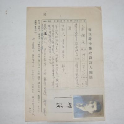 김상옥(金相沃)시인 친필약력,사진 상태좋음 보관함1-1